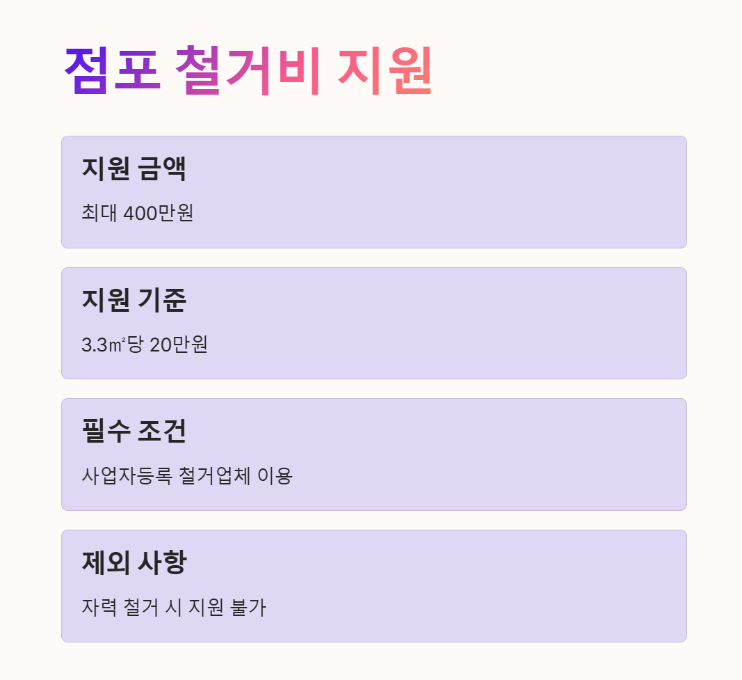 ✅ 폐업을 고민 중이라면? → 점포철거비, 법률자문, 채무조정 지원을 받아보세요!