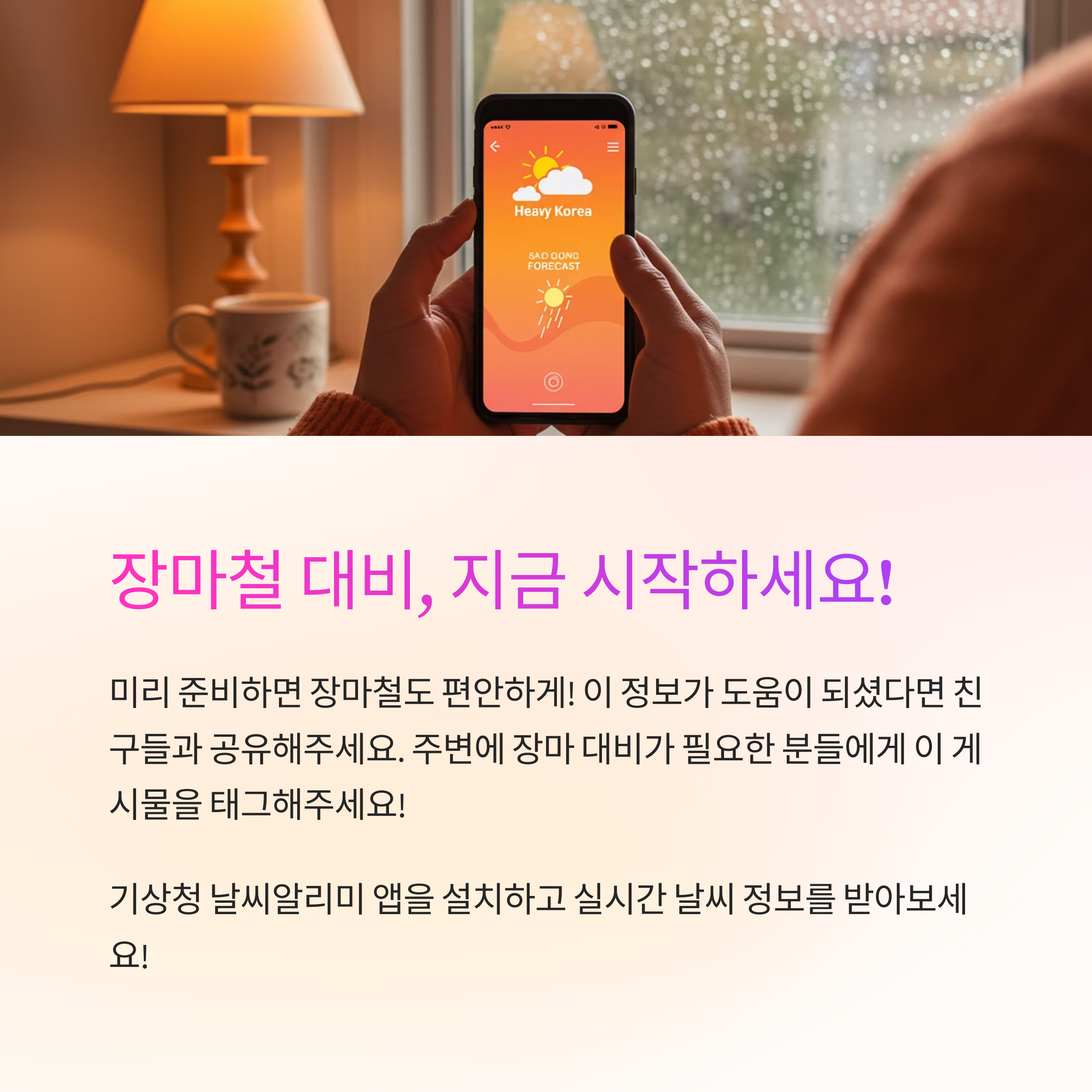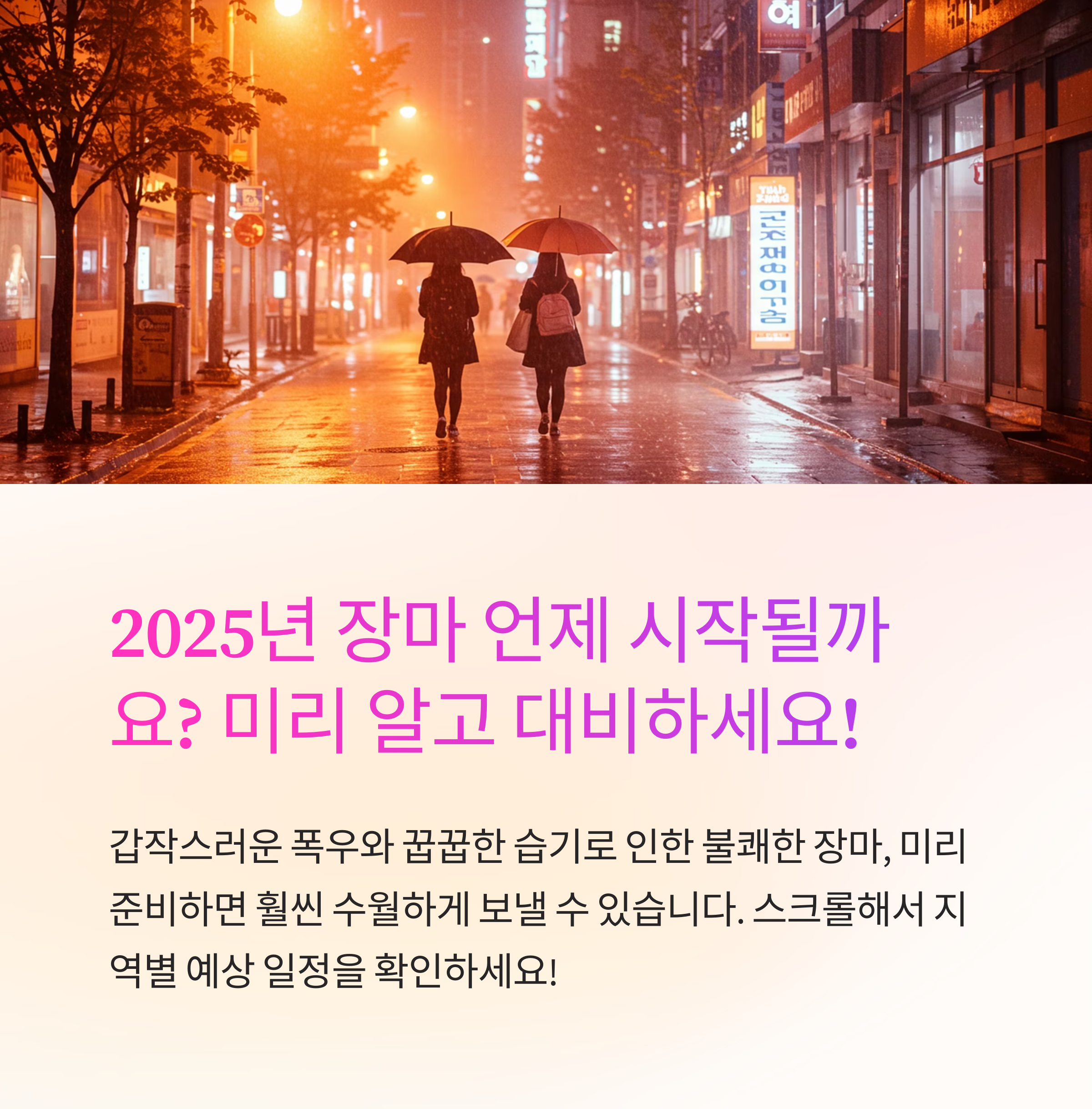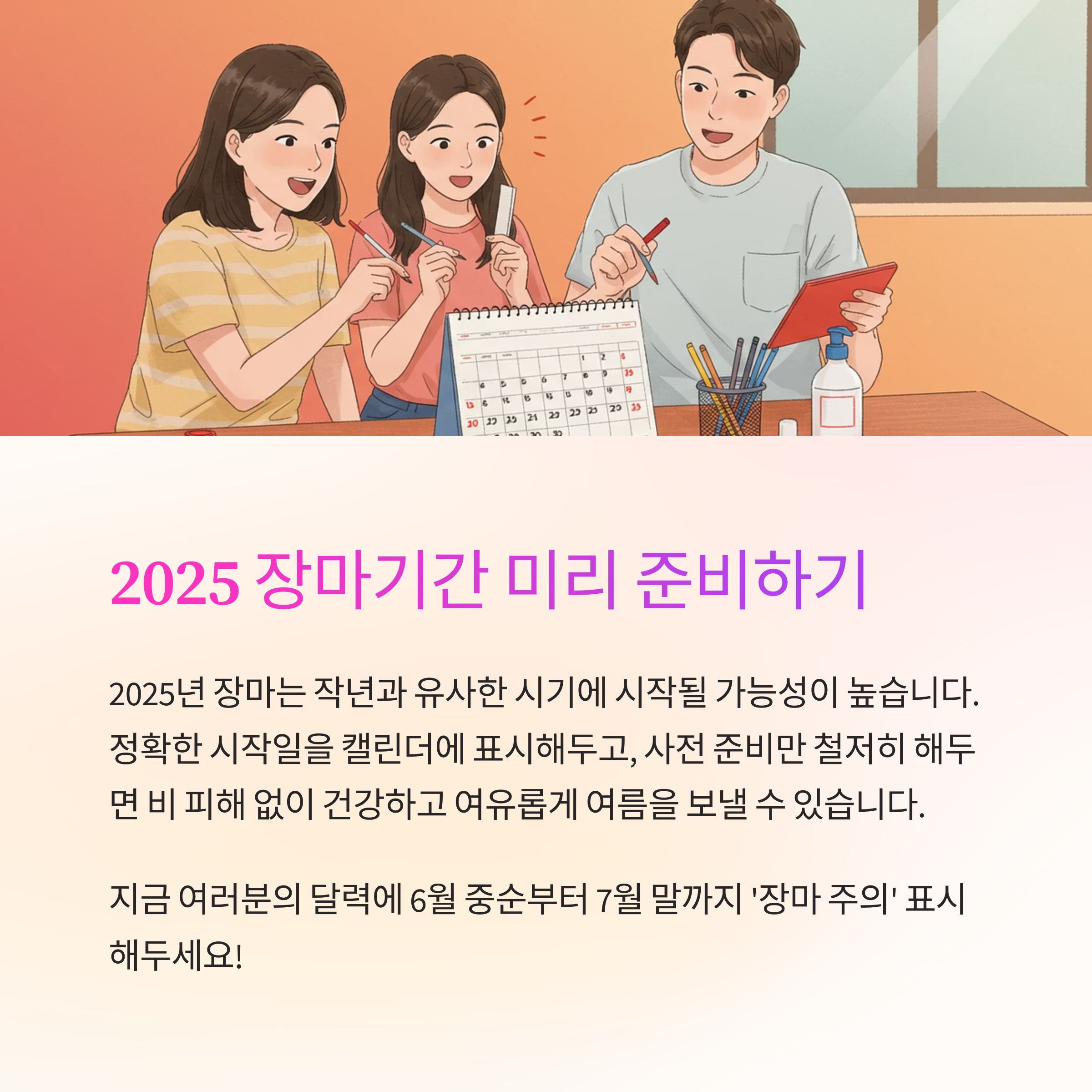 📅 지금 여러분의 달력에 6월 중순부터 7월 말까지 ‘장마 주의’ 표시 해두세요!