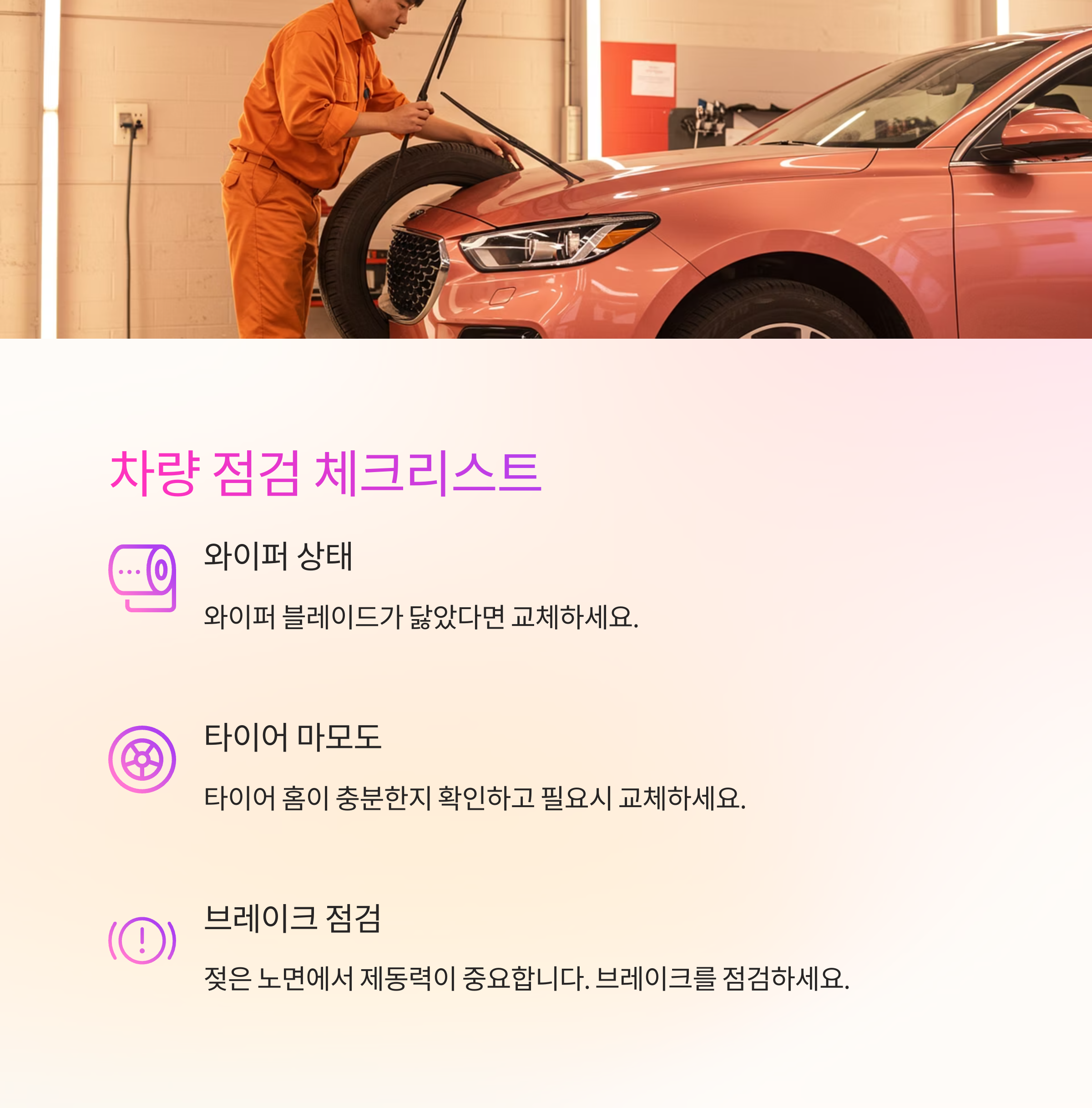 - ✅ 차량 점검: 와이퍼, 타이어 마모도 체크